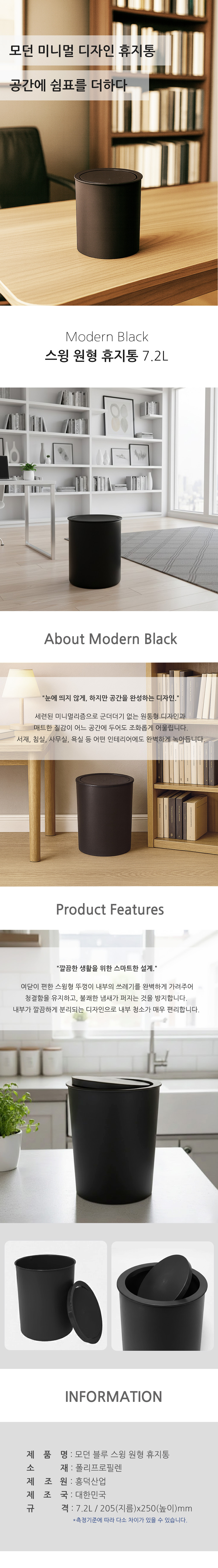 국내제작 시크블랙 스윙 인테리어 쓰레기통 7리터
